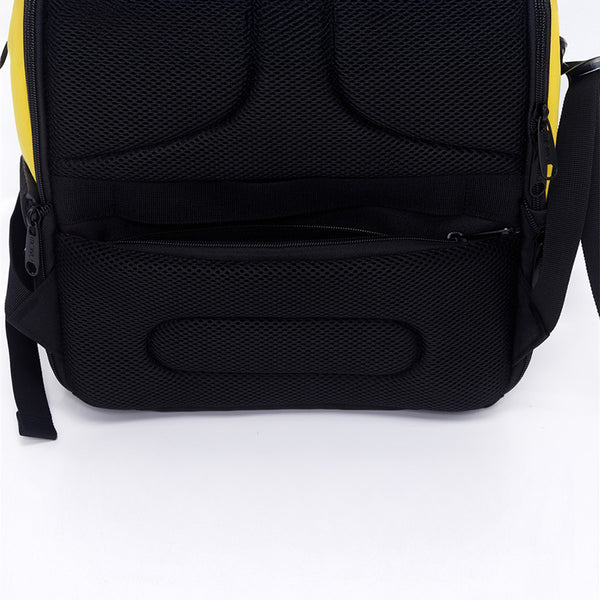 Espalda con mesh para ventilación y tirantes ergonómicos acolchados.